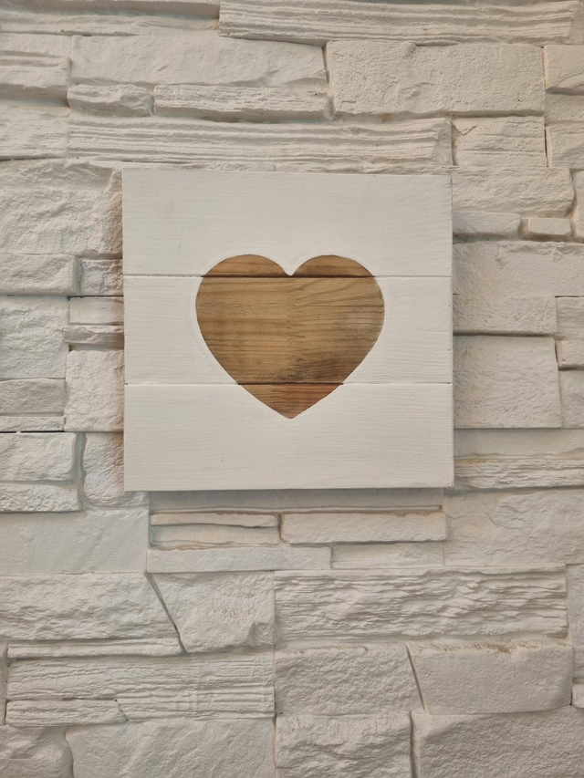 Cette pièce unique est conçue à partir de lattes de lit recyclées, transformées en une décoration murale élégante. Le centre de l’œuvre est orné d’un cœur en bois naturel, créant un contraste saisissant avec le reste de la pièce peinte en blanc. Chaque élément est soigneusement assemblé à la main, faisant de cette œuvre un ajout parfait à tout espace cherchant à combiner l’élégance moderne avec une touche de chaleur.