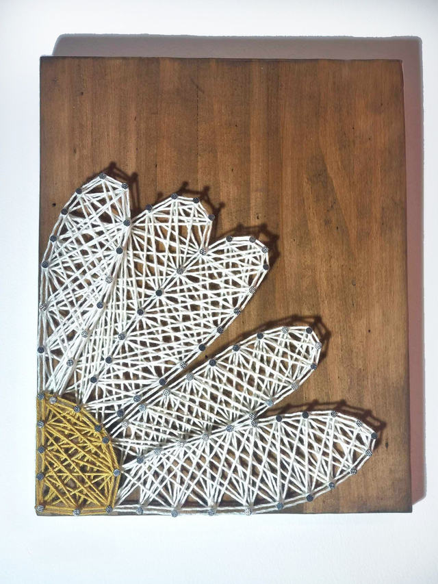 Cette Œuvre d’Art Upcycling est un tableau réalisé à partir du fil précieux de ma grand-mère qui aspirait à être couturière. Le fil, tissé avec passion et habileté, donne vie à un produit qui incarne non seulement l’art et la créativité, mais aussi l’héritage familial et les rêves inassouvis. Chaque entrelacement du fil raconte une histoire d’espoir, de désir et de la beauté intemporelle qui réside dans la transformation de matériaux anciens en quelque chose de nouveau et magnifique.