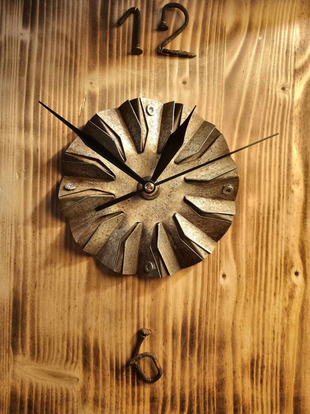 Design Rustique : Les chiffres sont faits de clous rouillés tordus pour un aspect rustique.